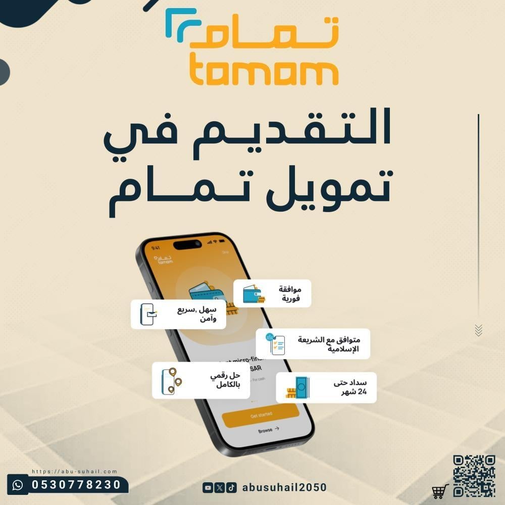 تمويل تمام : تمويل تمام للموظف في القطاع الخاص و الموظف في القطاع الحكومي و تقدم تمام خدمات القروض الصغيرة فورية من غير الحاجة إلى تقديم وثائق معقدة أو زيارة البنوك